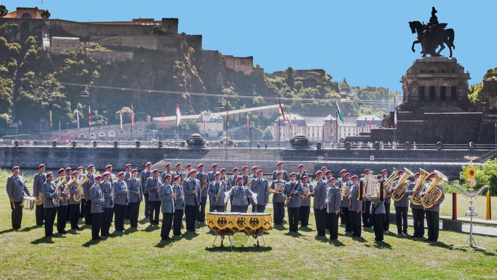 Das Heeresmusikkorps Koblenz ist das älteste aktive Musikkorps der Bundeswehr – aufgestellt 1956 in Idar-Oberstein und kurz darauf nach Koblenz verlegt. Heute steht es unter dem Kommando des neu aufgestellten Unterstützungskommandos und gehört zum Zentrum Militärmusik. Mit rund 60 Musikern gestaltet es Auftritte in Rheinland-Pfalz und dem Saarland und darüber hinaus – von feierlichen Zeremonien wie Gelöbnissen, Zapfenstreichen oder Staatsempfängen bis hin zu öffentlichen Konzerten und Musikfestivals. Ihr abwechslungsreiches Repertoire reicht von traditioneller Militärmusik bis hin zu sinfonischer Blasmusik und modernen Unterhaltungsstücken – immer mit einem klaren Anspruch: musikalisch zu verbinden und zu begeistern.