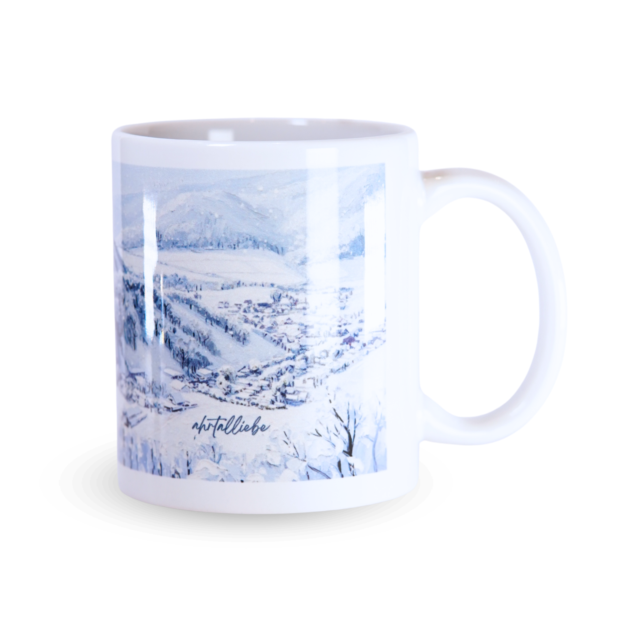 Die Motive wurden bewusst gewählt, um unterschiedliche Facetten des Ahrtals einzufangen. Die Winterlandschaft zeigt das Ahrtal von seiner stillen, entschleunigten Seite – verschneite Weinberge, Ruhe und Besinnlichkeit. Die Uferlichter hingegen stehen für Gemeinschaft, Hoffnung und das Miteinander entlang der Ahr. Beide Motive machen jede Tasse zu einem kleinen Blickfang und zu einem emotionalen Begleiter im Alltag.