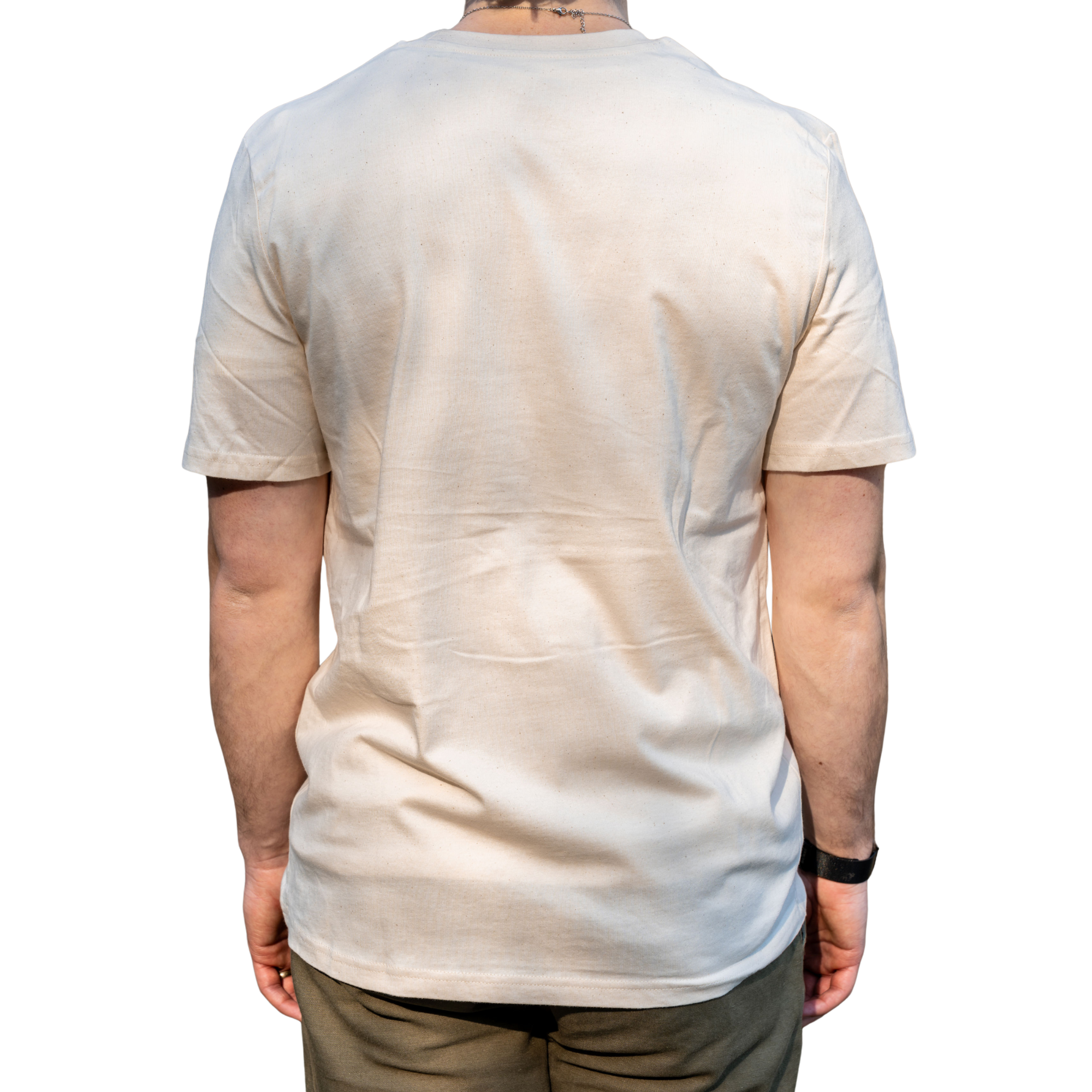 Erlebe nachhaltigen Komfort pur! Dieses T-Shirt verkörpert den nachhaltigen Stil in seiner reinsten Form. Es wird aus 100 % ungefärbter Bio-Baumwolle gefertigt, was die Auswirkungen auf die Umwelt minimiert. Da keine Färbemittel zum Einsatz kommen, erstrahlt der Stoff in seiner natürlichen, ungefärbten Farbe – so wie die Baumwollpflanze selbst. Im Stoff erkennst du sogar winzige Pflanzen- oder Samenpartikel, die jedes Teil noch authentischer und einzigartiger machen. Ein nachhaltiges und stylisches Statement für alle, die Wert auf Umweltbewusstsein legen.